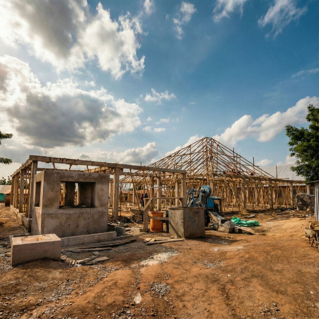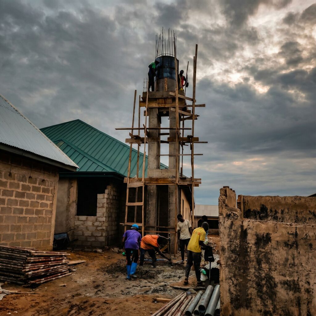 مركز متكامل: جامع خرسانة 400م² + 8 فصول (علوي زنك مطوّر) + بئر ارتوازي.